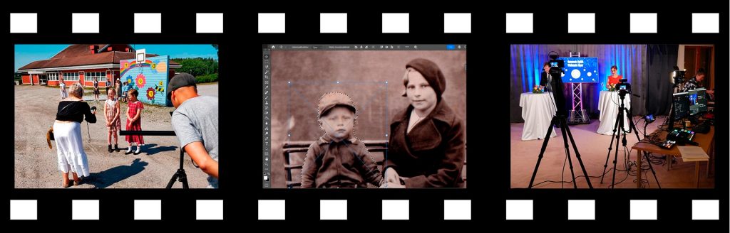 Kuvaukset, ilmakuvaukset ja äänitykset toteutetaan huolellisesti ja laadukkaasti – kuvauskohteiden ja tuotantotarkoitusten mukaisesti.Inspelningar, flygfilmningar och ljudupptagningar genomförs noggrant och professionellt – anpassat till motiv och produktionens syfte.Filming, aerial shots, and audio recordings are carried out carefully and professionally – according to the subject and production purpose.